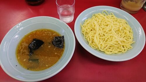 つけめん(並盛) 600円 今年も一関遠征前に立ち寄り朝ラー。 今回はオススメのつけ麺を注文。 「ラーメンショップ」の定番アイテム、青白い平べったい丼で登場。 麺は流水でキリッと〆られた中太縮れ。 熱々の豚骨醤油のつけ汁は酸味弱め。 細切りのチャーシ…