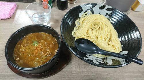 カレーつけ麺 覚醒(大盛) 900円 以前訪問した博多ラーメン専門店「博多 維新」と同じ系列のつけ麺専門店。 店頭の券売機で一押しのカレーつけ麺の食券を購入。 大盛りまでは無料。辛さは値段違いで、虜(中辛)・覚醒(辛口)・極(大辛)と選べるので、 オススメ…