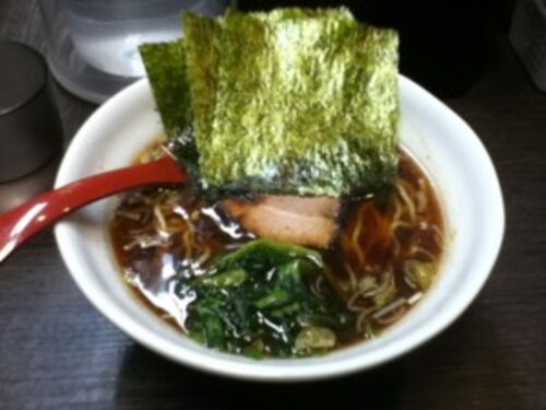和風 黒らぁめん 690円 以前の看板や公式サイトでは「麺屋」と表記されているが 2011年4月に家系にリニューアルして「麺家」と変更。 家系のメニューは同行者に任せて、こちらは魚介醤油。 サービスのライスはサイズが選べるので、大をお願いした。 ちなみに…
