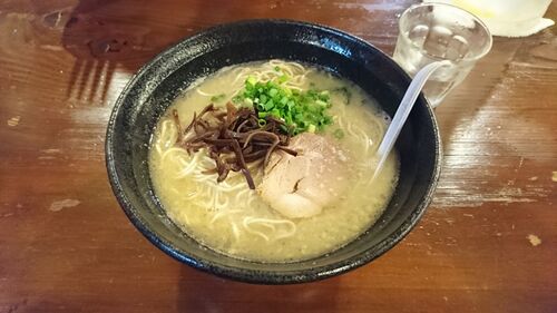 プレミア豚骨ラーメン 750円 長いこと宿題だった店に初訪問。 担々麺がウリのようだが、トップメニューを注文。 店頭では「ネオ豚骨」店内では「プレミア豚骨」。7/1より変更になったようだ。 丼が到着。 スープは背脂が浮いた濃厚な豚骨100%。 麺は北海道産…
